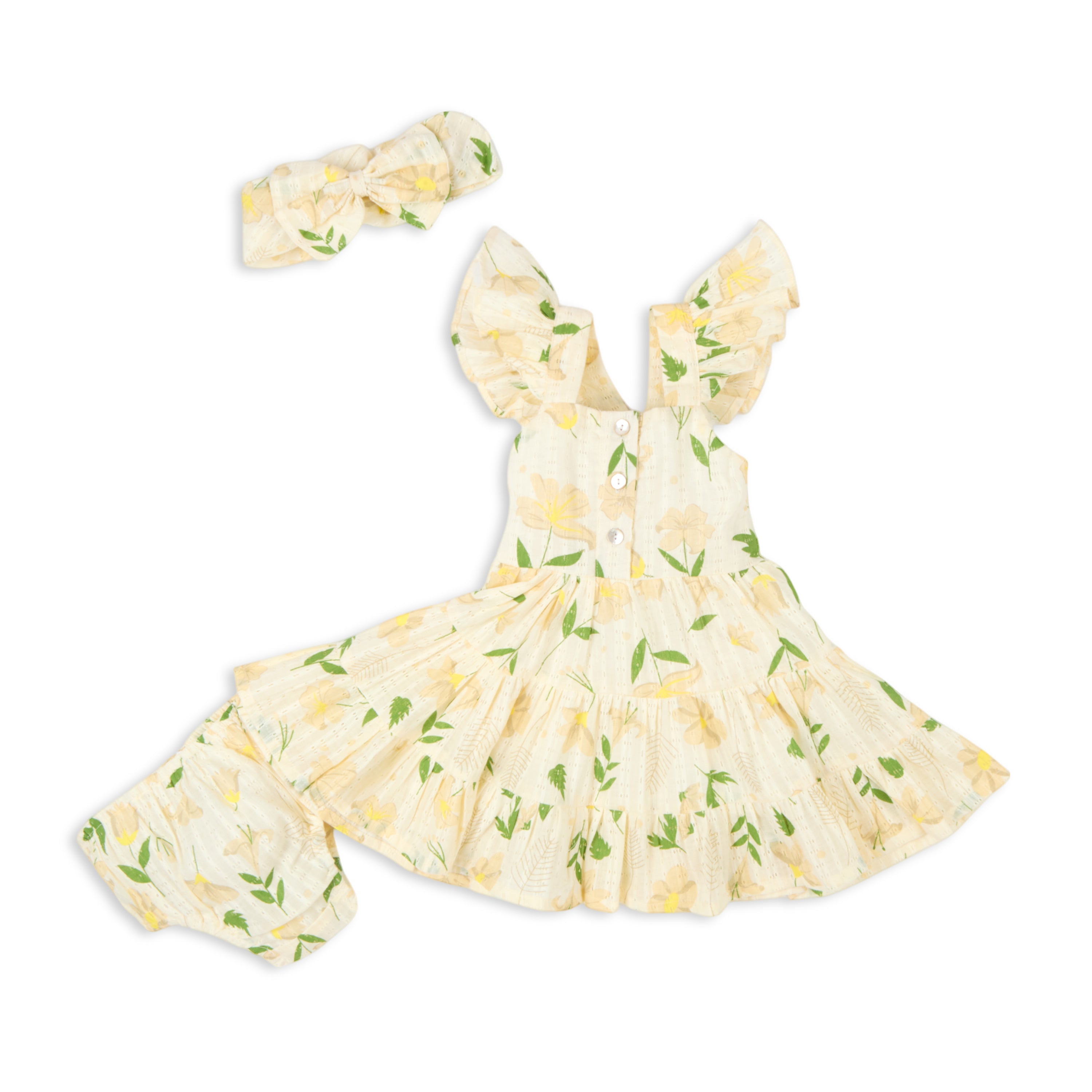 Floral Printed Rah-Rah Dress With Bloomer & Hairband