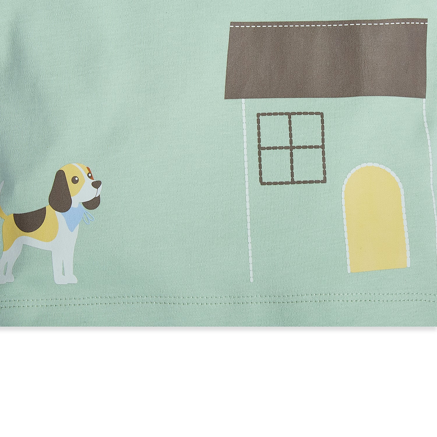Soft and stylish, this sage green biowash tee is adorned with a thoughtfully placed barnyard print, making it a charming addition to your little one's wardrobe. Designed with comfort in mind, the breathable fabric ensures a gentle touch against the skin, perfect for everyday wear.